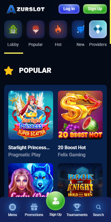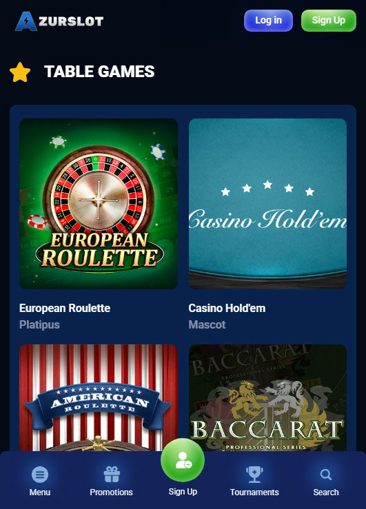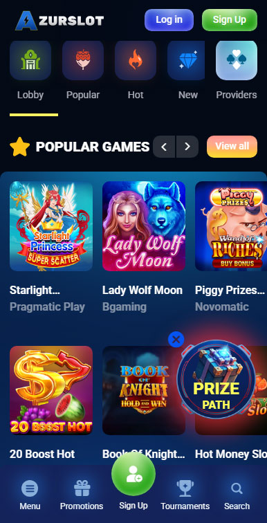 AzurSlot Casino fungerar bra i mobila webbläsare, med en användarvänlig design som är perfekt anpassad för navigering med tumknapparna. Samma kontofunktioner, bonusar och systemet ”Mynt/Prestationer/Turneringar” är naturligtvis tillgängliga för mobila spelare. Ja, casinot gjorde inte den extra ansträngningen för att tillhandahålla en inbyggd app, men vi kommer att visa hur man lägger till en genväg till sina Android- och iOS-hemskärmar. Nu kör vi.